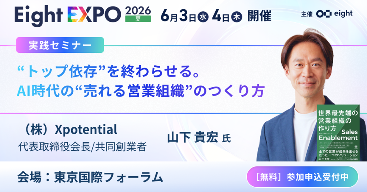 株式会社Xpotential、『Eight EXPO2026@国際フォーラム』に会長山下が登壇~“トップ依存”を終わらせる。AI時代の“売れる営業組織”のつくり方~