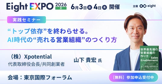 株式会社Xpotential(本社:東京都千代田区、代表取締役社長:下村 諒、以下Xpotential)は、2026年6月3日(水)・4日(木)に開催される「Eight EXPO2026@国際フォーラム」に弊社会長山下貴宏が登壇することをお知らせいたします。