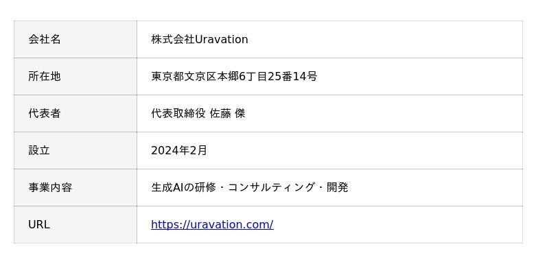 株式会社Uravation(本社:東京都文京区、代表取締役:佐藤傑/岩手県出身)は、LINEオープンチャットを活動基盤とする生成AIコミュニティ「Iwate.AI」を2026年4月より始動します。気軽に参加できるLINEベースの場で、日々のAI活用Tips共有・月次Meetup・岩手のAI情報交換を通じて、生成AIを"知る"だけでなく"使える"人を岩手に増やしていくことを目的とします。