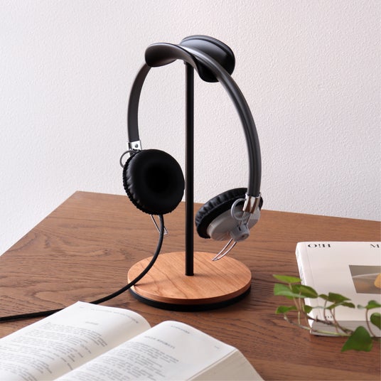 3.【機材とインテリアの不調和】無垢材×アルミの質感プラスチック製のスタンドでは、高級なヘッドホンの質感に見劣りしてしまいます。