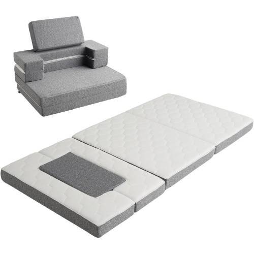 ソファとベッドを別で置くと場所を取る。このモデルはマットレス・ソファ・カウチソファ・マットレス&枕の4通りで使い分けられ、1台で生活スペースをまとめられる構成。日中はソファとして使い、夜は寝具に切り替える。