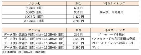 提供開始を記念し、「データ使い放題(24時間)」(注)のプロモコードがもらえるキャンペーンを同日から実施します。