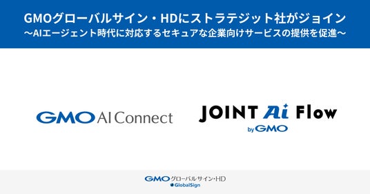 GMOグローバルサイン・ホールディングス株式会社(代表取締役社長:青山 満 以下、GMOグローバルサイン・HD)は、2026年4月30日(木)に、APIコネクタ付きMCP(※1)構築プラットフォーム「JOINT(ジョイント)」を展開する株式会社ストラテジット(代表取締役社長:加藤 史恵 以下、ストラテジット)の株式を取得し、当社のグループ会社といたしました。同時に、ストラテジットは社名を「GMO AIコネクト株式会社」(以下、GMO AIコネクト)に、主要サービス名を「JOINT AI Flow byGMO」へ変更いたしました。本件により、AIエージェントと業務システムを連携するデータ基盤に、当社の認証セキュリティ技術を組み合わせることで、企業が安全にAIを活用できる環境の提供を開始します。