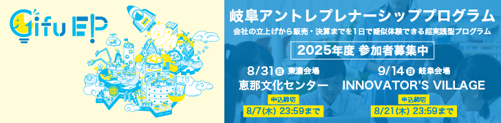 岐阜県では、未来を担う中高生の皆さんに対し、身近な課題を発見する力、課題解決のアイデアを考える創造性など、社会に出たときに必要とされる能力を身に付けるアントレプレナーシップ(起業家精神)を育む取り組みを実施します。 岐阜県が展開するイベント情報や県内のスタートアップの活動情報をまとめています。ぜひチェックしてみてください。