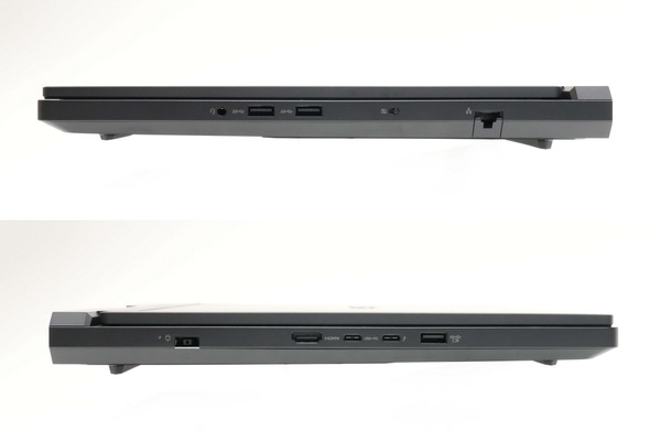 右側面には3.5mmコンボジャック、USB3.2 Gen1 Type-A×2、電子式プライバシーシャッタースイッチ、有線LAN(2.5GbE)、左側面には電源端子、HDMI 2.1、USB 3.2 Gen2 Type-C、Thunderbolt 4、USB 3.2 Gen2 Type-Aを用意