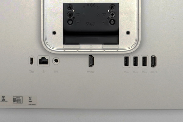背面下部には、USB 3.2 Gen1 Type-C(データ転送対応、映像出力・給電非対応)、有線LAN(1000BASE-T)、電源端子、HDMI入力、USB 3.2 Gen1 Type-A×3、HDMI 2.1b出力を用意