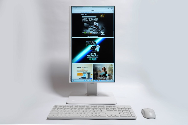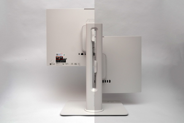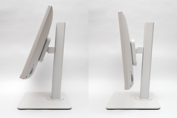 またチルト、スイーベル、高さ調整はもちろんのこと、本体を右方向に回転させて縦表示も可能だ。オールインワンPCでここまで設置の自由度が高いのは珍しい。